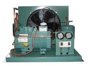 Агргегат на базе поршневого полугерметичного низкотемпературного компрессора Bitzer для использования в небольших системах выносного холода: сборных морозильных камер, складов, овощехранилищ.