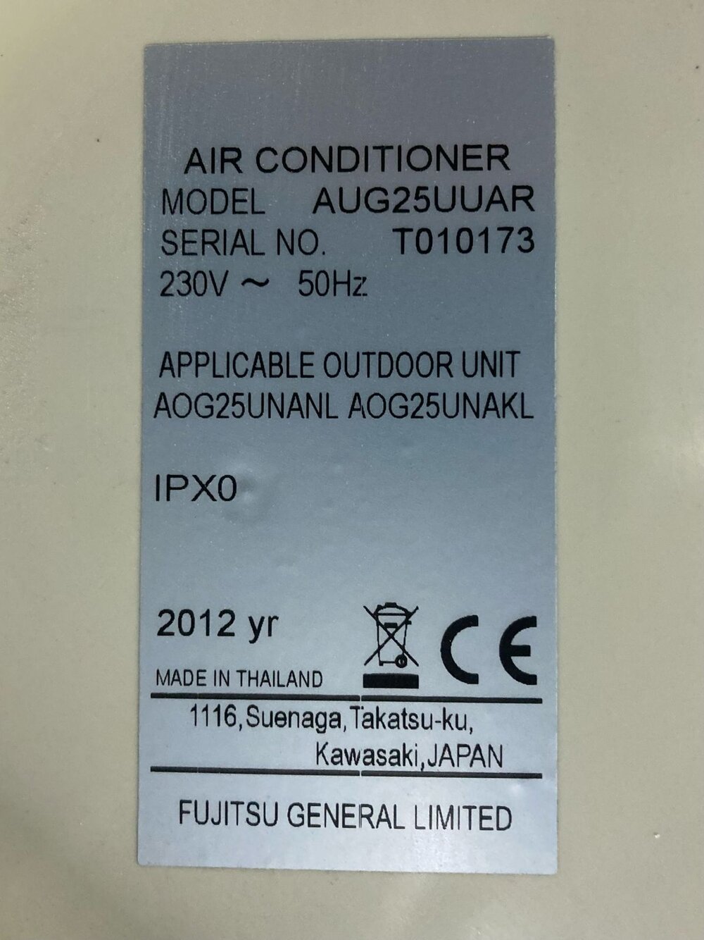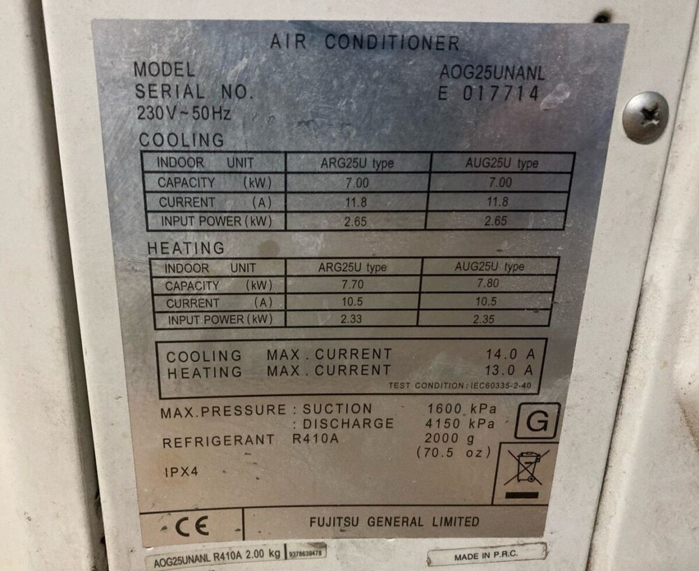 Fujitsu GENЕRАL АUG25UUAR/АОG25UNАNL.