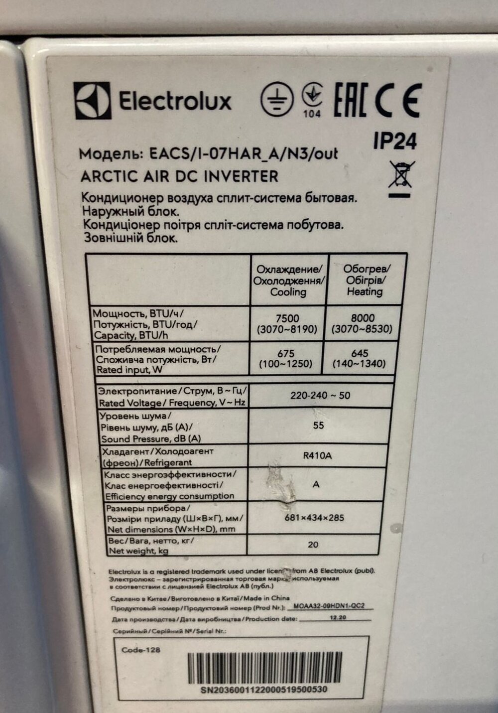 - Потребляемая мощность в режиме охлаждения: 675 Вт