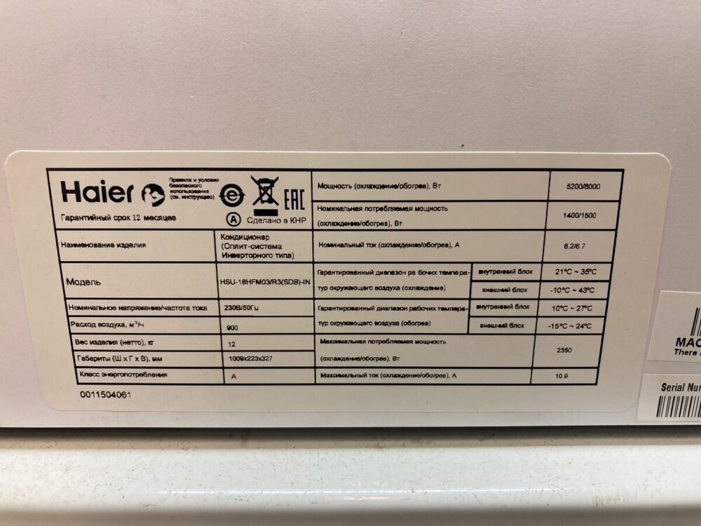 Кондиционер Haier 18 (до 55 м², инвертор), серия Наiеr Flехis DС-Invеrtеr