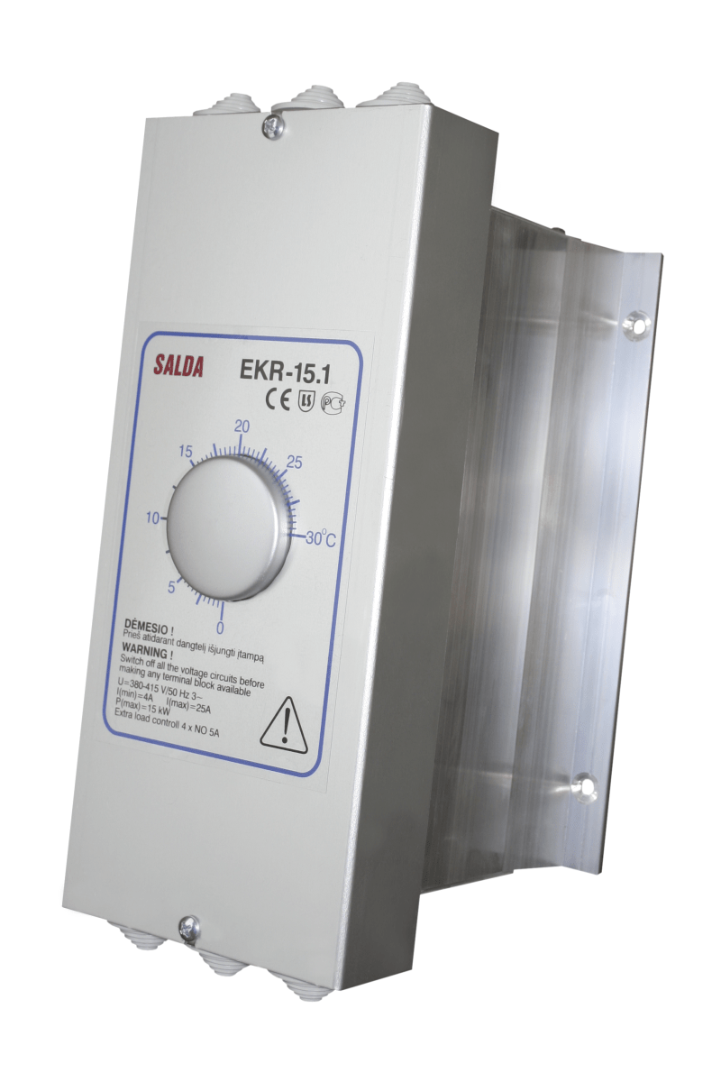 EKR 15.1 может управлять нагревателем мощностью до 15 кВт и имеет дополнительный релейный выход, к которому можно подключить нагрузку до 12 кВт.