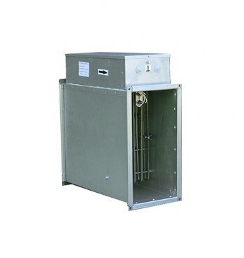 Нагреватели встраиваются непосредственно в вентиляционный канал прямоугольного сечения.
