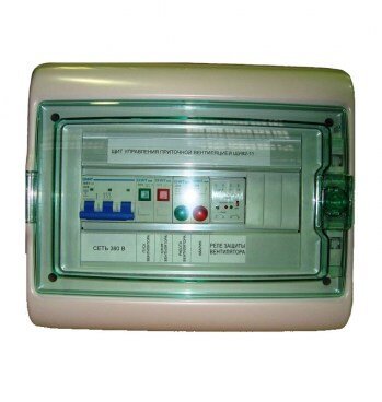 Щит управления ЩУВ2 предназначен для пуска вентилятора и защиты от перегрева обмоток двигателя, питание 380 В. Двигатели должны быть оснащены позисторными (термисторными) или биметаллическими термоконтактами.