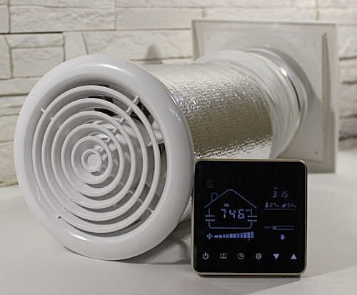 Салюс TkV-03 СО2 Децентрализованная вентиляционная приточная установка с электрическим подогревом воздуха и настенным сенсорным блоком управления.